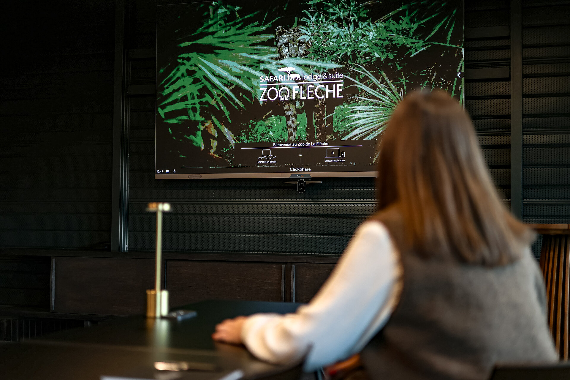 Salle équipée high-tech, éclairée naturellement, avec vue sur les guépards. L’alliance parfaite entre efficacité professionnelle et évasion au coeur du Zoo de La Flèche.