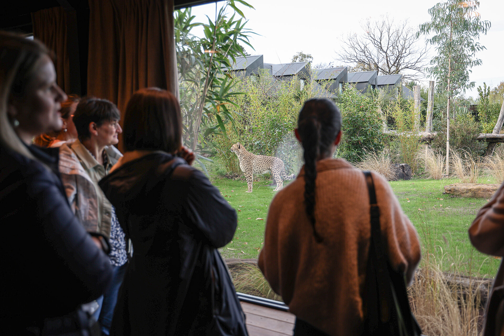 Un espace chaleureux pour vos pauses, avec vue directe sur les guépards. Un cadre unique pour échanger, se détendre et s’inspirer.